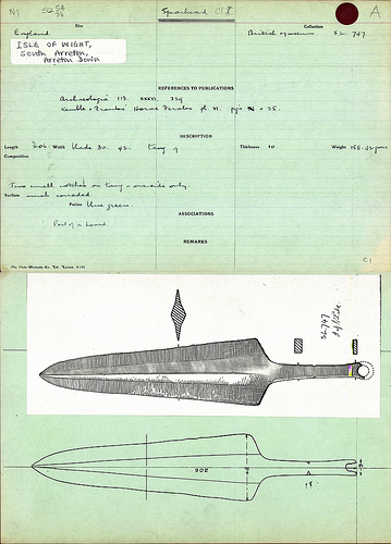 British Museum Bronze Age Card Index transcription of miscellaneous objects